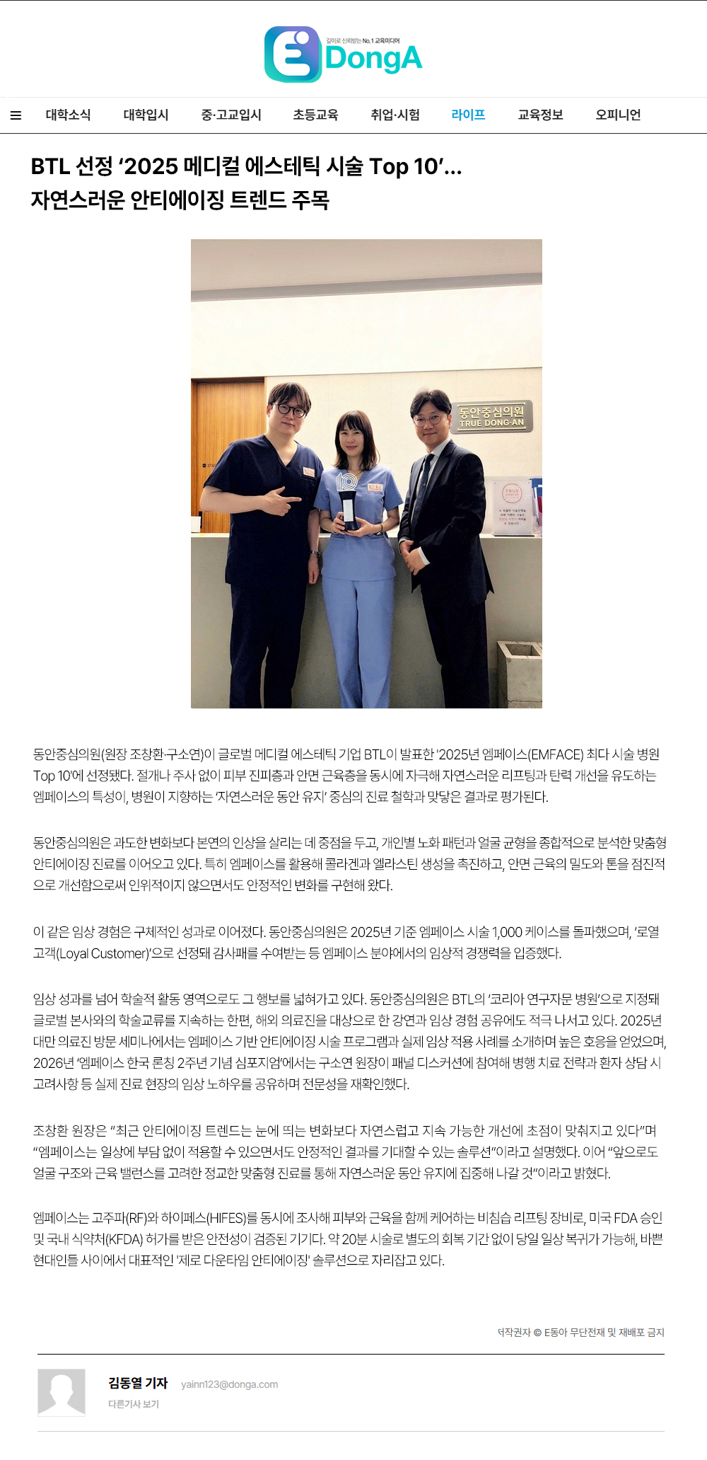 | 16 | BTL 선정 ‘2025 메디컬 에스테틱 시술 Top 10’…자연스러운 안티에이징 트렌드 주목 | 2026.04.04 | 7 |