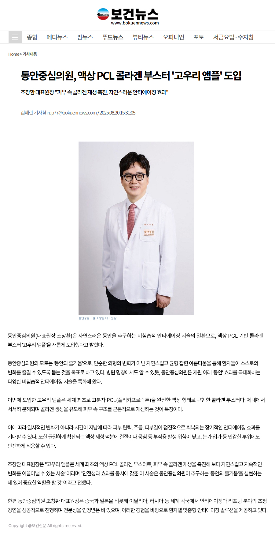 제목 | 동안중심의원, 액상 PCL 콜라겐 부스터 ‘고우리 앰플’ 도입 | ||